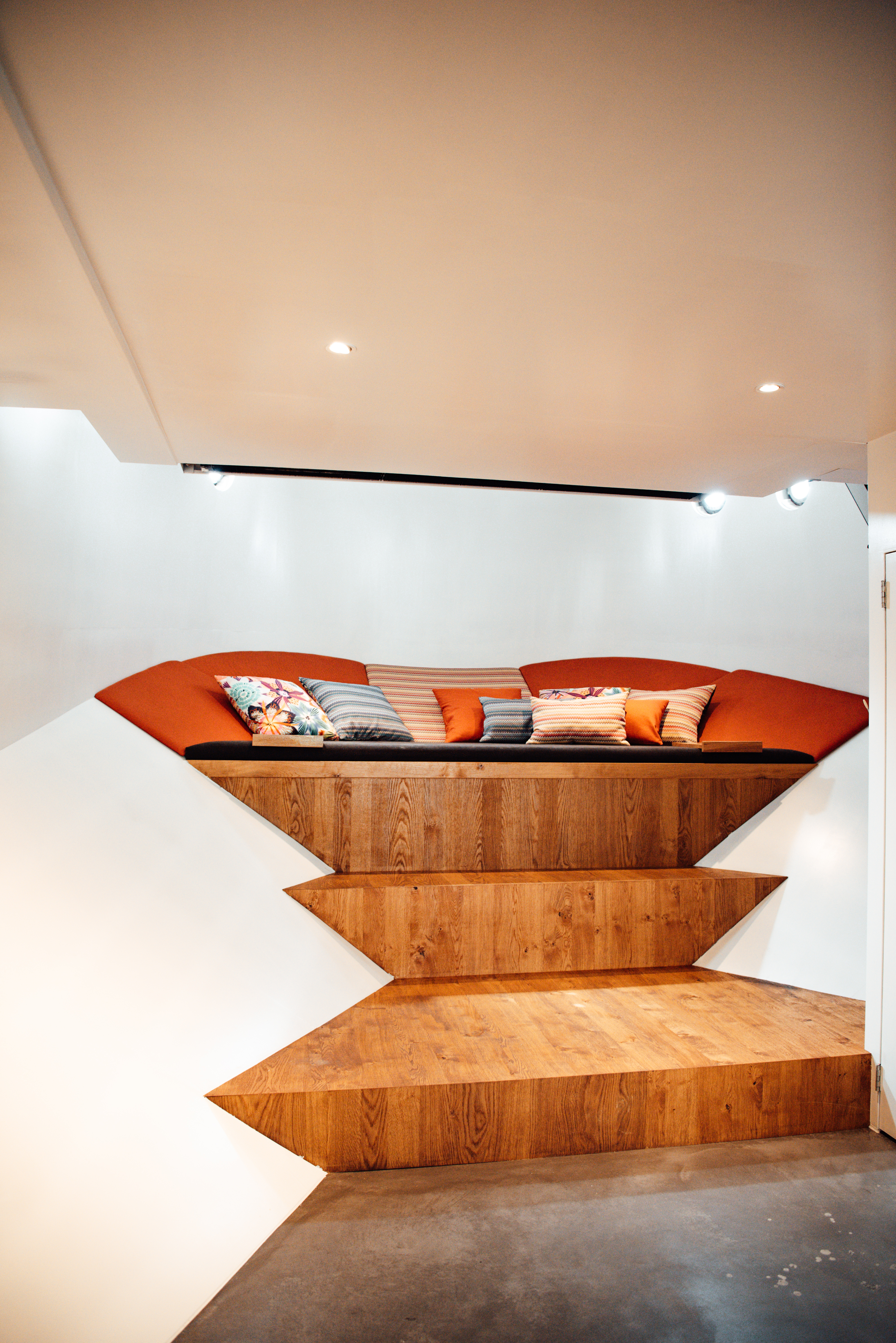 Woodies houdt van sfeer en samenhang, de combinatie van originele items van het schip die behouden kunnen worden samenbrengen met de keuze van materialen, comfort en bijzondere items samenbrengen zodat er een mooi beeld en identiteit ontstaat.Een klein detail is vaak aanzet tot een nieuw ontwerp. Sfeer creëren is de leidraad.